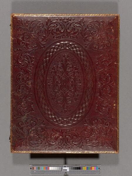 Four of the men are identified in handwriting on a copy of this photograph in the Historical Society of Southern California photograph collection (photCL 400, box 36), by an unknown source: "Back row, left to right: William McKee, Charles Johnson, Alfred Robinson (?) and man seated, second from right: Robert Carlisle." Photographer's imprint on inside front cover: "Robert H. Vance, Premium Daguerrean Galleries, San Francisco, Sacramento & Marysville." Date based on years that Vance had galleries in these locations.