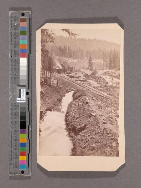 This collection contains 372 stereographic photographs (including some variants and duplicates) by photographer A. A. Hart that document the construction of the western half of first transcontinental railroad by the Central Pacific Railroad between 1864 and 1869. The collection includes all but seven of the original series, numbered from 1 to 364 by Hart (lacking 193, 323, 333, 358, 359, 362, and 364). The images chronicle the advancement of the railroad over 742 miles in California and the Sierra Nevada Mountains, Nevada, and Utah. The majority of the photographs are views of mountains, lakes, rivers, and forested areas (some with stumps from clear-cutting in the foreground), often with railroad tracks running through the center of the images. In addition, there are also images of locomotives, Chinese and other workers, equipment, bridges, tunnels, frontier and mining towns, construction camps, as well as some images of Native Americans, including Paiute and Shoshone Indians. The stereographs primarily contain Hart's own Sacramento imprint with series titles including: "Scenes in the Sierra Nevada Mountains"; "Scenes in the Valley of the Sacramento"; "Scenes in the Washoe Range"; "Scenes on the Humboldt River"; and "Scenes near Great Salt Lake". Interspersed in the collection are stereographs published without credit to Hart by Frank Durgan and Carleton E. Watkins.