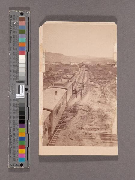 This collection contains 372 stereographic photographs (including some variants and duplicates) by photographer A. A. Hart that document the construction of the western half of first transcontinental railroad by the Central Pacific Railroad between 1864 and 1869. The collection includes all but seven of the original series, numbered from 1 to 364 by Hart (lacking 193, 323, 333, 358, 359, 362, and 364). The images chronicle the advancement of the railroad over 742 miles in California and the Sierra Nevada Mountains, Nevada, and Utah. The majority of the photographs are views of mountains, lakes, rivers, and forested areas (some with stumps from clear-cutting in the foreground), often with railroad tracks running through the center of the images. In addition, there are also images of locomotives, Chinese and other workers, equipment, bridges, tunnels, frontier and mining towns, construction camps, as well as some images of Native Americans, including Paiute and Shoshone Indians. The stereographs primarily contain Hart's own Sacramento imprint with series titles including: "Scenes in the Sierra Nevada Mountains"; "Scenes in the Valley of the Sacramento"; "Scenes in the Washoe Range"; "Scenes on the Humboldt River"; and "Scenes near Great Salt Lake". Interspersed in the collection are stereographs published without credit to Hart by Frank Durgan and Carleton E. Watkins.