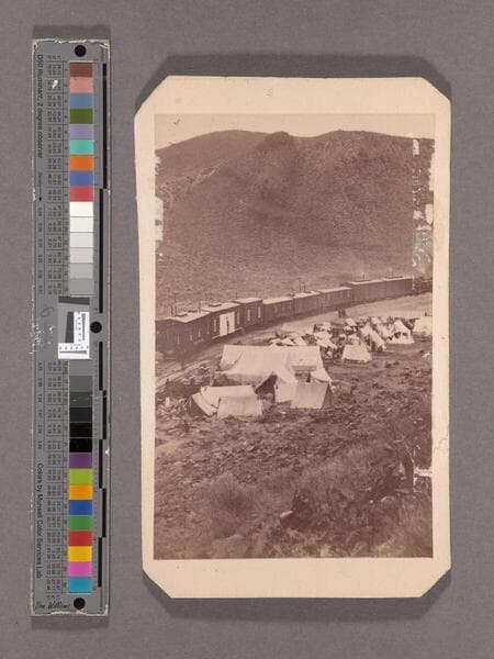 This collection contains 372 stereographic photographs (including some variants and duplicates) by photographer A. A. Hart that document the construction of the western half of first transcontinental railroad by the Central Pacific Railroad between 1864 and 1869. The collection includes all but seven of the original series, numbered from 1 to 364 by Hart (lacking 193, 323, 333, 358, 359, 362, and 364). The images chronicle the advancement of the railroad over 742 miles in California and the Sierra Nevada Mountains, Nevada, and Utah. The majority of the photographs are views of mountains, lakes, rivers, and forested areas (some with stumps from clear-cutting in the foreground), often with railroad tracks running through the center of the images. In addition, there are also images of locomotives, Chinese and other workers, equipment, bridges, tunnels, frontier and mining towns, construction camps, as well as some images of Native Americans, including Paiute and Shoshone Indians. The stereographs primarily contain Hart's own Sacramento imprint with series titles including: "Scenes in the Sierra Nevada Mountains"; "Scenes in the Valley of the Sacramento"; "Scenes in the Washoe Range"; "Scenes on the Humboldt River"; and "Scenes near Great Salt Lake". Interspersed in the collection are stereographs published without credit to Hart by Frank Durgan and Carleton E. Watkins.