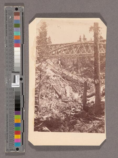 This collection contains 372 stereographic photographs (including some variants and duplicates) by photographer A. A. Hart that document the construction of the western half of first transcontinental railroad by the Central Pacific Railroad between 1864 and 1869. The collection includes all but seven of the original series, numbered from 1 to 364 by Hart (lacking 193, 323, 333, 358, 359, 362, and 364). The images chronicle the advancement of the railroad over 742 miles in California and the Sierra Nevada Mountains, Nevada, and Utah. The majority of the photographs are views of mountains, lakes, rivers, and forested areas (some with stumps from clear-cutting in the foreground), often with railroad tracks running through the center of the images. In addition, there are also images of locomotives, Chinese and other workers, equipment, bridges, tunnels, frontier and mining towns, construction camps, as well as some images of Native Americans, including Paiute and Shoshone Indians. The stereographs primarily contain Hart's own Sacramento imprint with series titles including: "Scenes in the Sierra Nevada Mountains"; "Scenes in the Valley of the Sacramento"; "Scenes in the Washoe Range"; "Scenes on the Humboldt River"; and "Scenes near Great Salt Lake". Interspersed in the collection are stereographs published without credit to Hart by Frank Durgan and Carleton E. Watkins.