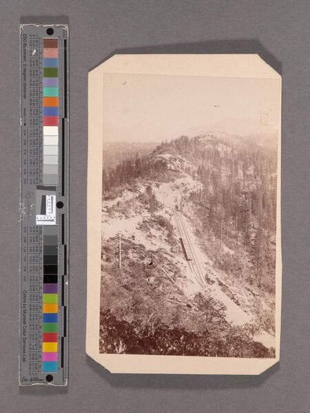 This collection contains 372 stereographic photographs (including some variants and duplicates) by photographer A. A. Hart that document the construction of the western half of first transcontinental railroad by the Central Pacific Railroad between 1864 and 1869. The collection includes all but seven of the original series, numbered from 1 to 364 by Hart (lacking 193, 323, 333, 358, 359, 362, and 364). The images chronicle the advancement of the railroad over 742 miles in California and the Sierra Nevada Mountains, Nevada, and Utah. The majority of the photographs are views of mountains, lakes, rivers, and forested areas (some with stumps from clear-cutting in the foreground), often with railroad tracks running through the center of the images. In addition, there are also images of locomotives, Chinese and other workers, equipment, bridges, tunnels, frontier and mining towns, construction camps, as well as some images of Native Americans, including Paiute and Shoshone Indians. The stereographs primarily contain Hart's own Sacramento imprint with series titles including: "Scenes in the Sierra Nevada Mountains"; "Scenes in the Valley of the Sacramento"; "Scenes in the Washoe Range"; "Scenes on the Humboldt River"; and "Scenes near Great Salt Lake". Interspersed in the collection are stereographs published without credit to Hart by Frank Durgan and Carleton E. Watkins.