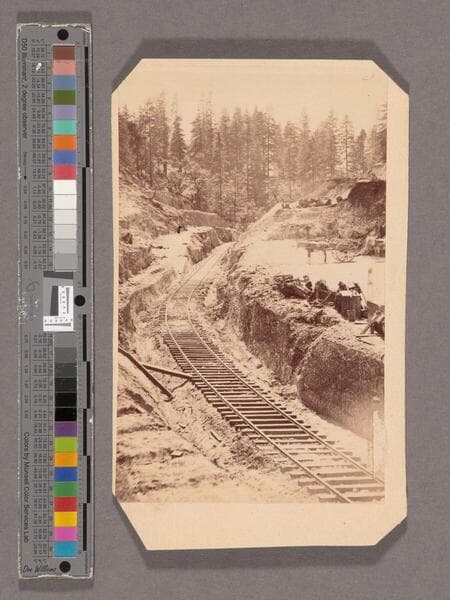 This collection contains 372 stereographic photographs (including some variants and duplicates) by photographer A. A. Hart that document the construction of the western half of first transcontinental railroad by the Central Pacific Railroad between 1864 and 1869. The collection includes all but seven of the original series, numbered from 1 to 364 by Hart (lacking 193, 323, 333, 358, 359, 362, and 364). The images chronicle the advancement of the railroad over 742 miles in California and the Sierra Nevada Mountains, Nevada, and Utah. The majority of the photographs are views of mountains, lakes, rivers, and forested areas (some with stumps from clear-cutting in the foreground), often with railroad tracks running through the center of the images. In addition, there are also images of locomotives, Chinese and other workers, equipment, bridges, tunnels, frontier and mining towns, construction camps, as well as some images of Native Americans, including Paiute and Shoshone Indians. The stereographs primarily contain Hart's own Sacramento imprint with series titles including: "Scenes in the Sierra Nevada Mountains"; "Scenes in the Valley of the Sacramento"; "Scenes in the Washoe Range"; "Scenes on the Humboldt River"; and "Scenes near Great Salt Lake". Interspersed in the collection are stereographs published without credit to Hart by Frank Durgan and Carleton E. Watkins.