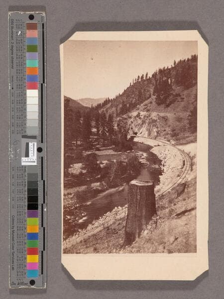 This collection contains 372 stereographic photographs (including some variants and duplicates) by photographer A. A. Hart that document the construction of the western half of first transcontinental railroad by the Central Pacific Railroad between 1864 and 1869. The collection includes all but seven of the original series, numbered from 1 to 364 by Hart (lacking 193, 323, 333, 358, 359, 362, and 364). The images chronicle the advancement of the railroad over 742 miles in California and the Sierra Nevada Mountains, Nevada, and Utah. The majority of the photographs are views of mountains, lakes, rivers, and forested areas (some with stumps from clear-cutting in the foreground), often with railroad tracks running through the center of the images. In addition, there are also images of locomotives, Chinese and other workers, equipment, bridges, tunnels, frontier and mining towns, construction camps, as well as some images of Native Americans, including Paiute and Shoshone Indians. The stereographs primarily contain Hart's own Sacramento imprint with series titles including: "Scenes in the Sierra Nevada Mountains"; "Scenes in the Valley of the Sacramento"; "Scenes in the Washoe Range"; "Scenes on the Humboldt River"; and "Scenes near Great Salt Lake". Interspersed in the collection are stereographs published without credit to Hart by Frank Durgan and Carleton E. Watkins.