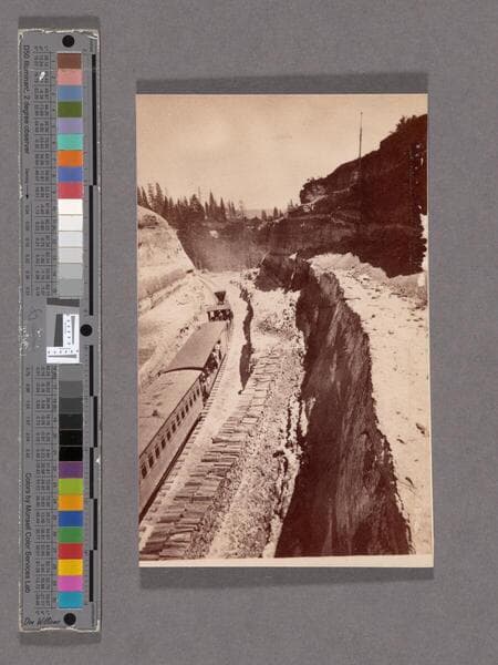 This collection contains 372 stereographic photographs (including some variants and duplicates) by photographer A. A. Hart that document the construction of the western half of first transcontinental railroad by the Central Pacific Railroad between 1864 and 1869. The collection includes all but seven of the original series, numbered from 1 to 364 by Hart (lacking 193, 323, 333, 358, 359, 362, and 364). The images chronicle the advancement of the railroad over 742 miles in California and the Sierra Nevada Mountains, Nevada, and Utah. The majority of the photographs are views of mountains, lakes, rivers, and forested areas (some with stumps from clear-cutting in the foreground), often with railroad tracks running through the center of the images. In addition, there are also images of locomotives, Chinese and other workers, equipment, bridges, tunnels, frontier and mining towns, construction camps, as well as some images of Native Americans, including Paiute and Shoshone Indians. The stereographs primarily contain Hart's own Sacramento imprint with series titles including: "Scenes in the Sierra Nevada Mountains"; "Scenes in the Valley of the Sacramento"; "Scenes in the Washoe Range"; "Scenes on the Humboldt River"; and "Scenes near Great Salt Lake". Interspersed in the collection are stereographs published without credit to Hart by Frank Durgan and Carleton E. Watkins.