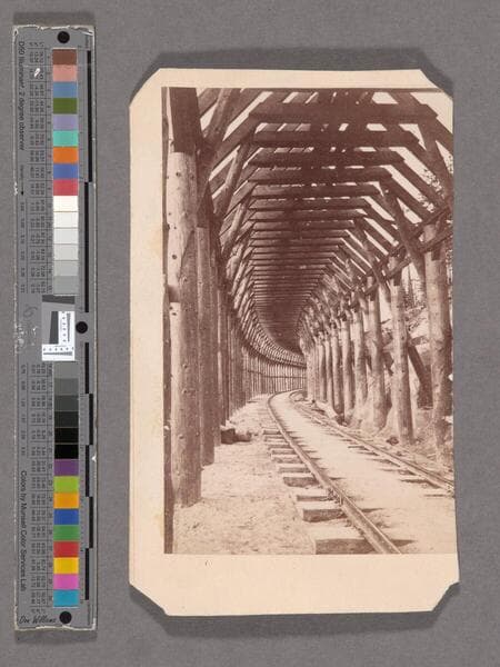 This collection contains 372 stereographic photographs (including some variants and duplicates) by photographer A. A. Hart that document the construction of the western half of first transcontinental railroad by the Central Pacific Railroad between 1864 and 1869. The collection includes all but seven of the original series, numbered from 1 to 364 by Hart (lacking 193, 323, 333, 358, 359, 362, and 364). The images chronicle the advancement of the railroad over 742 miles in California and the Sierra Nevada Mountains, Nevada, and Utah. The majority of the photographs are views of mountains, lakes, rivers, and forested areas (some with stumps from clear-cutting in the foreground), often with railroad tracks running through the center of the images. In addition, there are also images of locomotives, Chinese and other workers, equipment, bridges, tunnels, frontier and mining towns, construction camps, as well as some images of Native Americans, including Paiute and Shoshone Indians. The stereographs primarily contain Hart's own Sacramento imprint with series titles including: "Scenes in the Sierra Nevada Mountains"; "Scenes in the Valley of the Sacramento"; "Scenes in the Washoe Range"; "Scenes on the Humboldt River"; and "Scenes near Great Salt Lake". Interspersed in the collection are stereographs published without credit to Hart by Frank Durgan and Carleton E. Watkins.