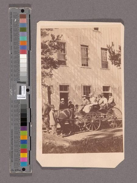This collection contains 430 albumen photographs by photographer Carleton E. Watkins that chiefly depict buildings, points of interest, and locales in Northern and Southern California in the 1870s and 1880s, as well as 223 card photographs by photographer Alfred A. Hart documenting the construction of the western half of the transcontinental railroad by the Central Pacific Railroad (CPRR) in the 1860s, which were later published by Watkins under his own imprint. Images by Watkins depict locations in Arizona and California including: Lake Tahoe, Los Angeles, the Mammoth Tree Grove, Paso Robles, San Bernardino, San Diego, San Gabriel, San Luis Obispo, San Pedro, Santa Monica, Soda Springs, Wilmington, and Yosemite, as well as views related to the Southern Pacific Railroad and of the Colorado River. There are a few images of Native Americans in Arizona and California, and several images related to trains and railroads. The photographs have been removed from the original album, which is a large leather album with brass bindings (Box 10). There are some handwritten identifications in the album pages, most likely written after if was received by the Library.
