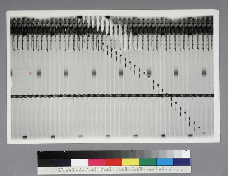 Machinery, Ballistics Research Laboratory. Photographer: Photographic Measurements Section, U.S. Army Ballistic Laboratory. Note in the hand of Grace (Burke) Hubble: "EPH, Huntington Library Collection." Possible measuring instruments, in three compartments, labeled Pitch, Lift, Drag.