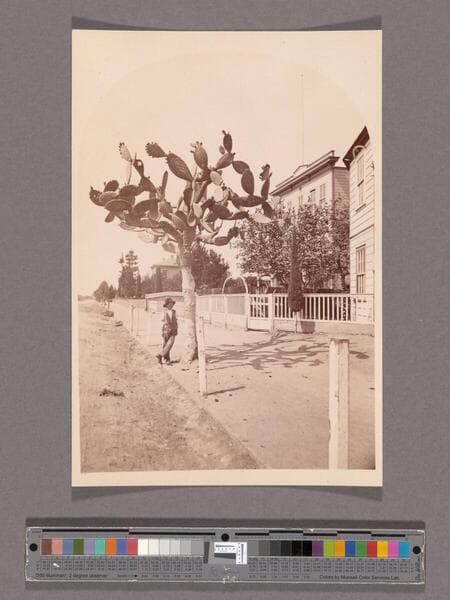 This collection contains 430 albumen photographs by photographer Carleton E. Watkins that chiefly depict buildings, points of interest, and locales in Northern and Southern California in the 1870s and 1880s, as well as 223 card photographs by photographer Alfred A. Hart documenting the construction of the western half of the transcontinental railroad by the Central Pacific Railroad (CPRR) in the 1860s, which were later published by Watkins under his own imprint. Images by Watkins depict locations in Arizona and California including: Lake Tahoe, Los Angeles, the Mammoth Tree Grove, Paso Robles, San Bernardino, San Diego, San Gabriel, San Luis Obispo, San Pedro, Santa Monica, Soda Springs, Wilmington, and Yosemite, as well as views related to the Southern Pacific Railroad and of the Colorado River. There are a few images of Native Americans in Arizona and California, and several images related to trains and railroads. The photographs have been removed from the original album, which is a large leather album with brass bindings (Box 10). There are some handwritten identifications in the album pages, most likely written after if was received by the Library.