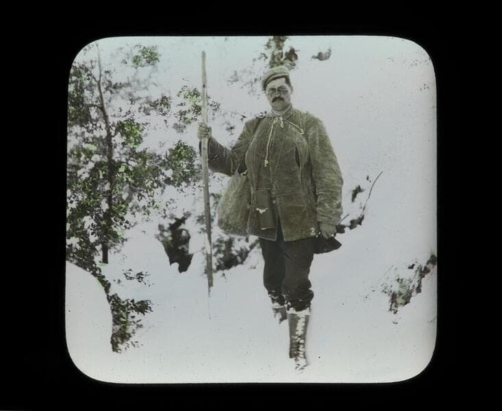 Captain Mueller on the snowy trail from Colby Ranch en route to Switzer's Camp