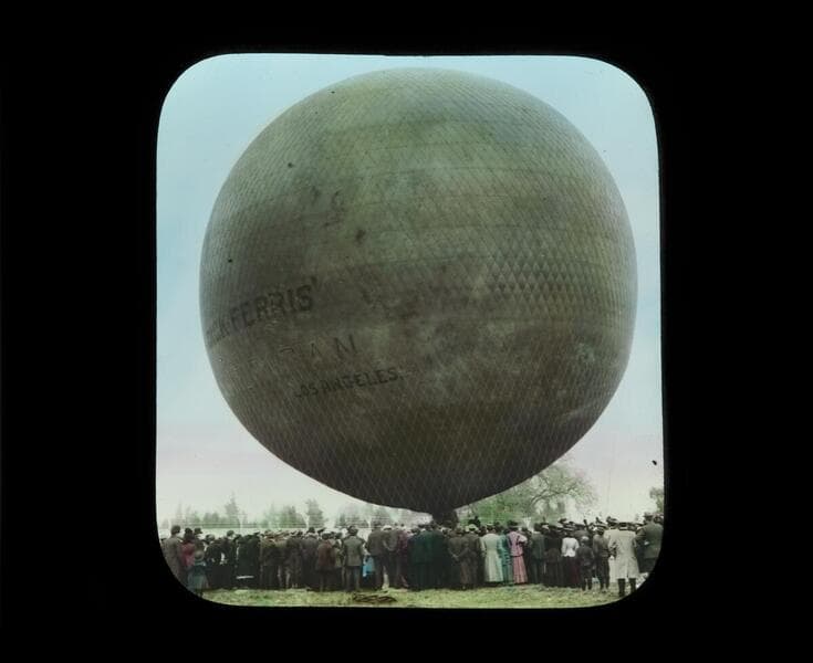 Crowd watches the "American" being inflated at Tournament Park, Pasadena