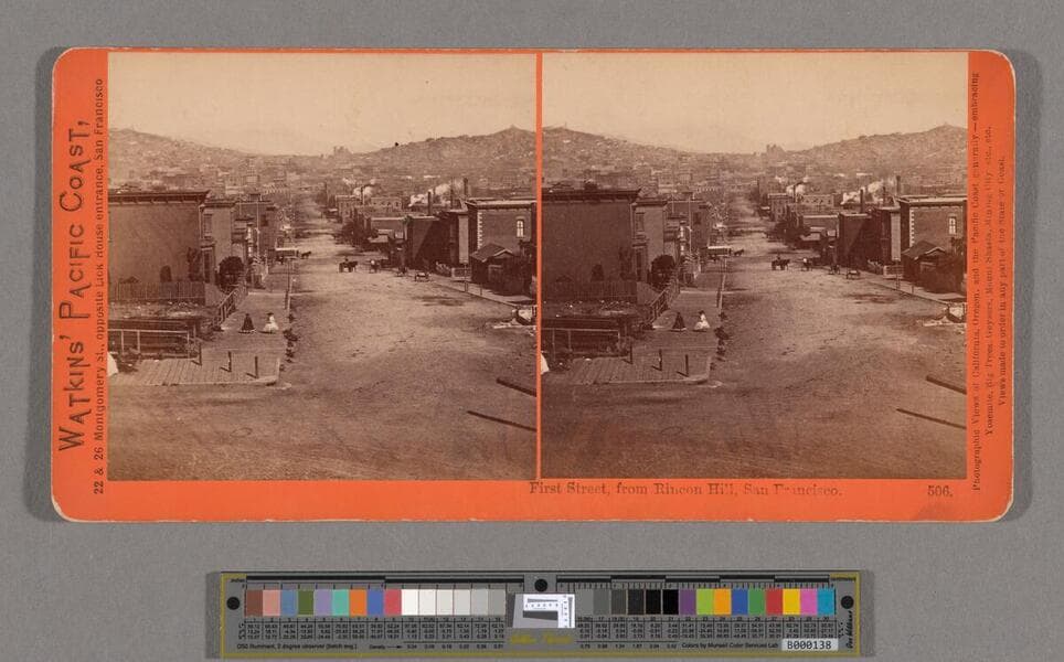 This collection contains 269 stereographs by photographer Carleton E. Watkins, dating from the 1860s to about the 1880s, that chiefly depict buildings, points of interest, and locales in Northern and Southern California. The collection includes 1 stereograph from the Central Pacific Railroad series; 5 stereographs from Watkins' Pacific Railroad Series; 110 stereographs from Watkins' Pacific Coast series; and 150 stereographs from Watkins' New Series. The Watkins' Pacific Coast Series, created between 1861 and 1874, primarily depict locales in Northern California with many images of buildings in San Francisco, views of Yosemite and Mariposa County, Missions, and some mining operations including photographs of the North Bloomfield Gravel Mining Company in Nevada County, California. The Watkins' New Series stereographs, created between 1874 and 1890, consist of images of both Southern California and Northern California, in cities including San Francisco, Pasadena, San Marino, Sierra Madre, and San Gabriel. Among the Southern California residences and properties depicted include the Sunny Slope Ranch of L.J. Rose in San Gabriel, Willow Dale owned by N.C. Carter, and Lake Vineyard owned by B.D. Wilson. Some of the stereographs in Watkins' Pacific Coast Series include titles in the margins in Watkins' own hand (see Nos. 1033, 1135, 1146, 1153, and 1721).