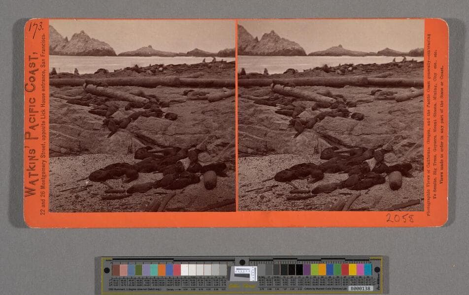 This collection contains 269 stereographs by photographer Carleton E. Watkins, dating from the 1860s to about the 1880s, that chiefly depict buildings, points of interest, and locales in Northern and Southern California. The collection includes 1 stereograph from the Central Pacific Railroad series; 5 stereographs from Watkins' Pacific Railroad Series; 110 stereographs from Watkins' Pacific Coast series; and 150 stereographs from Watkins' New Series. The Watkins' Pacific Coast Series, created between 1861 and 1874, primarily depict locales in Northern California with many images of buildings in San Francisco, views of Yosemite and Mariposa County, Missions, and some mining operations including photographs of the North Bloomfield Gravel Mining Company in Nevada County, California. The Watkins' New Series stereographs, created between 1874 and 1890, consist of images of both Southern California and Northern California, in cities including San Francisco, Pasadena, San Marino, Sierra Madre, and San Gabriel. Among the Southern California residences and properties depicted include the Sunny Slope Ranch of L.J. Rose in San Gabriel, Willow Dale owned by N.C. Carter, and Lake Vineyard owned by B.D. Wilson. Some of the stereographs in Watkins' Pacific Coast Series include titles in the margins in Watkins' own hand (see Nos. 1033, 1135, 1146, 1153, and 1721).