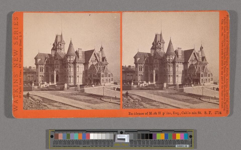 This collection contains 269 stereographs by photographer Carleton E. Watkins, dating from the 1860s to about the 1880s, that chiefly depict buildings, points of interest, and locales in Northern and Southern California. The collection includes 1 stereograph from the Central Pacific Railroad series; 5 stereographs from Watkins' Pacific Railroad Series; 110 stereographs from Watkins' Pacific Coast series; and 150 stereographs from Watkins' New Series. The Watkins' Pacific Coast Series, created between 1861 and 1874, primarily depict locales in Northern California with many images of buildings in San Francisco, views of Yosemite and Mariposa County, Missions, and some mining operations including photographs of the North Bloomfield Gravel Mining Company in Nevada County, California. The Watkins' New Series stereographs, created between 1874 and 1890, consist of images of both Southern California and Northern California, in cities including San Francisco, Pasadena, San Marino, Sierra Madre, and San Gabriel. Among the Southern California residences and properties depicted include the Sunny Slope Ranch of L.J. Rose in San Gabriel, Willow Dale owned by N.C. Carter, and Lake Vineyard owned by B.D. Wilson. Some of the stereographs in Watkins' Pacific Coast Series include titles in the margins in Watkins' own hand (see Nos. 1033, 1135, 1146, 1153, and 1721).
