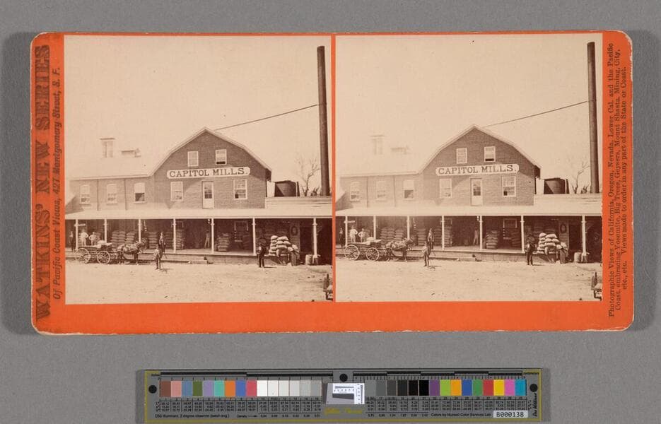This collection contains 269 stereographs by photographer Carleton E. Watkins, dating from the 1860s to about the 1880s, that chiefly depict buildings, points of interest, and locales in Northern and Southern California. The collection includes 1 stereograph from the Central Pacific Railroad series; 5 stereographs from Watkins' Pacific Railroad Series; 110 stereographs from Watkins' Pacific Coast series; and 150 stereographs from Watkins' New Series. The Watkins' Pacific Coast Series, created between 1861 and 1874, primarily depict locales in Northern California with many images of buildings in San Francisco, views of Yosemite and Mariposa County, Missions, and some mining operations including photographs of the North Bloomfield Gravel Mining Company in Nevada County, California. The Watkins' New Series stereographs, created between 1874 and 1890, consist of images of both Southern California and Northern California, in cities including San Francisco, Pasadena, San Marino, Sierra Madre, and San Gabriel. Among the Southern California residences and properties depicted include the Sunny Slope Ranch of L.J. Rose in San Gabriel, Willow Dale owned by N.C. Carter, and Lake Vineyard owned by B.D. Wilson. Some of the stereographs in Watkins' Pacific Coast Series include titles in the margins in Watkins' own hand (see Nos. 1033, 1135, 1146, 1153, and 1721).