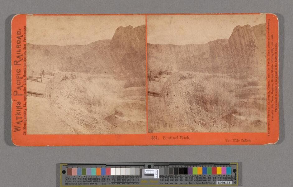 This collection contains 269 stereographs by photographer Carleton E. Watkins, dating from the 1860s to about the 1880s, that chiefly depict buildings, points of interest, and locales in Northern and Southern California. The collection includes 1 stereograph from the Central Pacific Railroad series; 5 stereographs from Watkins' Pacific Railroad Series; 110 stereographs from Watkins' Pacific Coast series; and 150 stereographs from Watkins' New Series. The Watkins' Pacific Coast Series, created between 1861 and 1874, primarily depict locales in Northern California with many images of buildings in San Francisco, views of Yosemite and Mariposa County, Missions, and some mining operations including photographs of the North Bloomfield Gravel Mining Company in Nevada County, California. The Watkins' New Series stereographs, created between 1874 and 1890, consist of images of both Southern California and Northern California, in cities including San Francisco, Pasadena, San Marino, Sierra Madre, and San Gabriel. Among the Southern California residences and properties depicted include the Sunny Slope Ranch of L.J. Rose in San Gabriel, Willow Dale owned by N.C. Carter, and Lake Vineyard owned by B.D. Wilson. Some of the stereographs in Watkins' Pacific Coast Series include titles in the margins in Watkins' own hand (see Nos. 1033, 1135, 1146, 1153, and 1721).