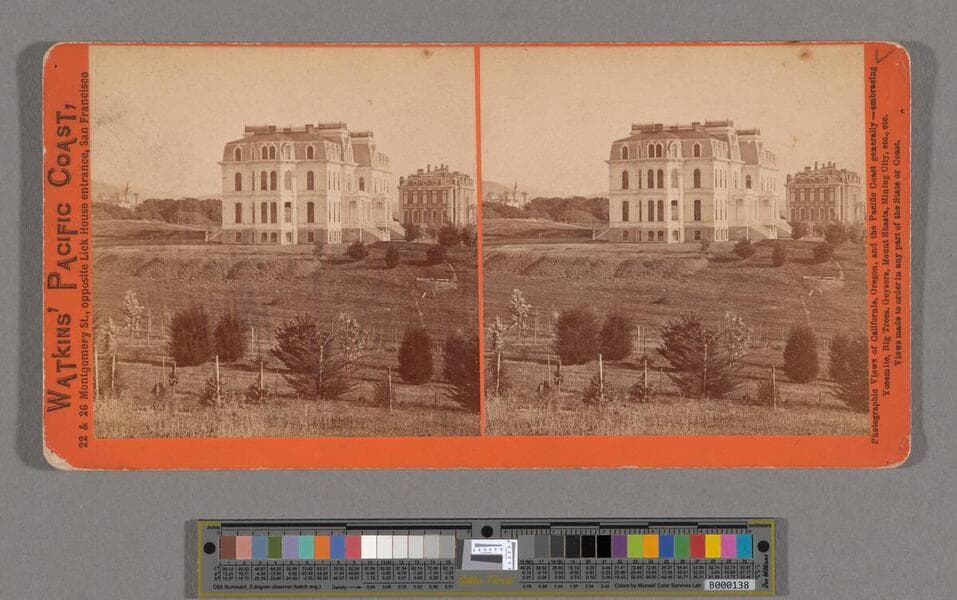 This collection contains 269 stereographs by photographer Carleton E. Watkins, dating from the 1860s to about the 1880s, that chiefly depict buildings, points of interest, and locales in Northern and Southern California. The collection includes 1 stereograph from the Central Pacific Railroad series; 5 stereographs from Watkins' Pacific Railroad Series; 110 stereographs from Watkins' Pacific Coast series; and 150 stereographs from Watkins' New Series. The Watkins' Pacific Coast Series, created between 1861 and 1874, primarily depict locales in Northern California with many images of buildings in San Francisco, views of Yosemite and Mariposa County, Missions, and some mining operations including photographs of the North Bloomfield Gravel Mining Company in Nevada County, California. The Watkins' New Series stereographs, created between 1874 and 1890, consist of images of both Southern California and Northern California, in cities including San Francisco, Pasadena, San Marino, Sierra Madre, and San Gabriel. Among the Southern California residences and properties depicted include the Sunny Slope Ranch of L.J. Rose in San Gabriel, Willow Dale owned by N.C. Carter, and Lake Vineyard owned by B.D. Wilson. Some of the stereographs in Watkins' Pacific Coast Series include titles in the margins in Watkins' own hand (see Nos. 1033, 1135, 1146, 1153, and 1721).