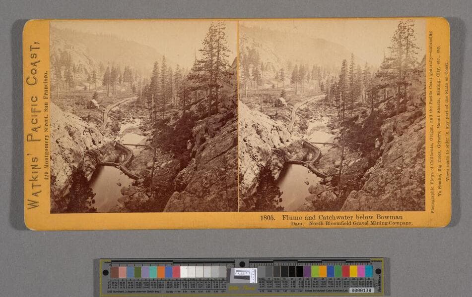 Flume and Catchwater below Bowman Dam. North Bloomfield Gravel Mining Company