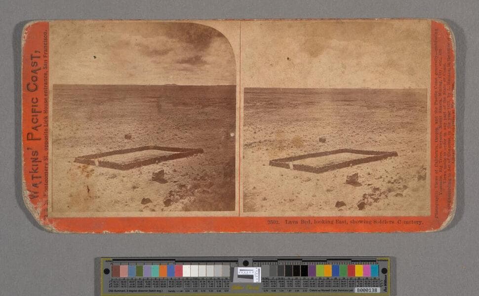 View of Lava Bed, looking North-east, showing the Modoc fortifications in the background