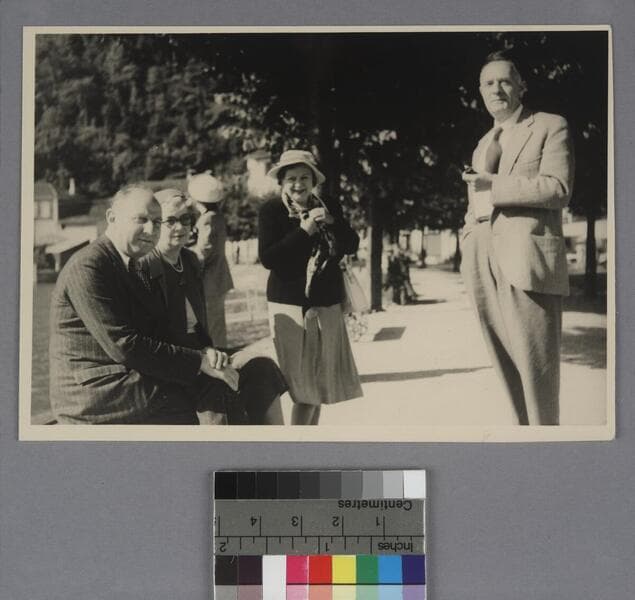 Robert Gore-Browne, Agnes Margaret Elias Gore-Browne, Grace Burke Hubble and Edwin Powell Hubble, outside in a park setting