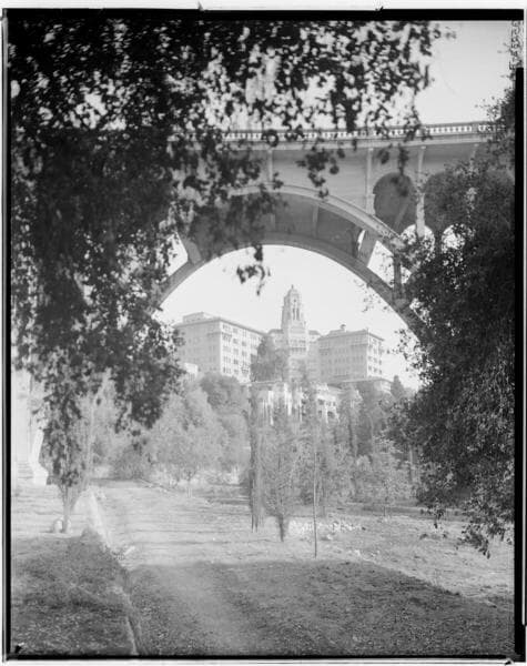 Vista Del Arroyo Hotel, 125 South Grand, and Colorado Street Bridge, Pasadena. 1928