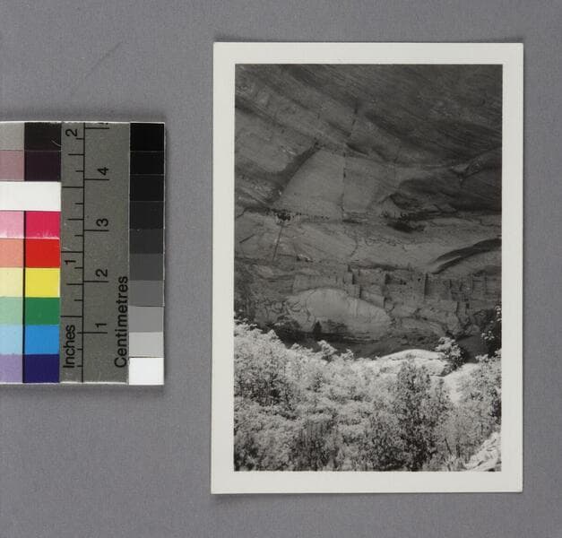 Betatakin cliff dwellings. Note in the hand of Grace Burke Hubble on verso: "Journal". Note in the hand of Edwin Powell Hubble on verso: "Betatakin, Navajo Reservation, Ariz., 1937".