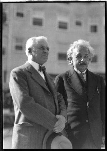 Albert Einstein with Albert Michelson and an unidentified man, 1931