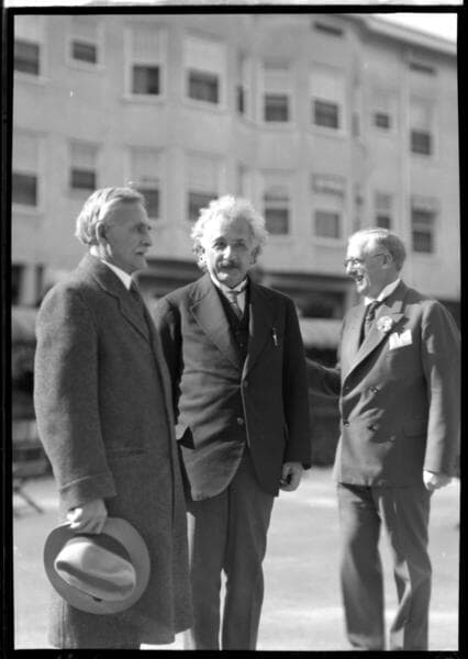 Albert Einstein with Albert Michelson and an unidentified man, 1931
