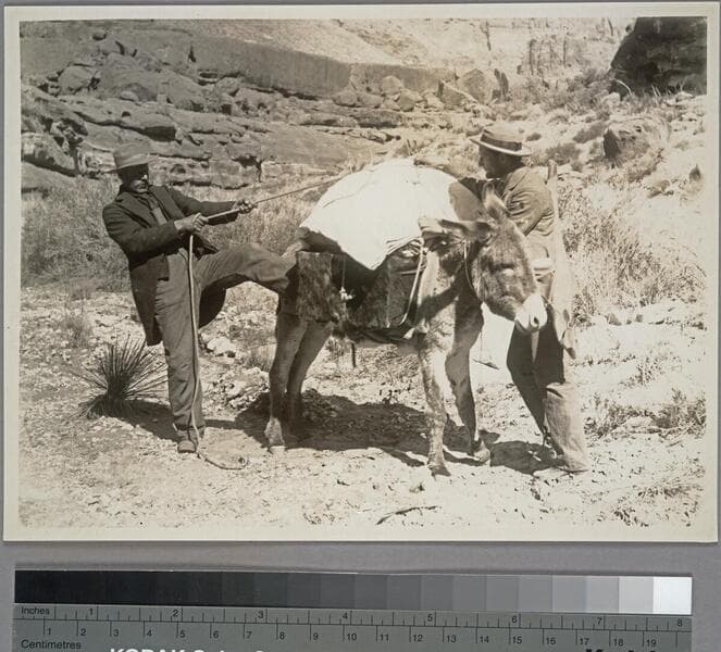 Unidentified images - Men on horseback on mountain trail with pack horses.