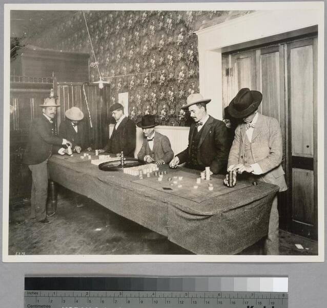 Roulette in California mining town. $20,000 in gold on the table