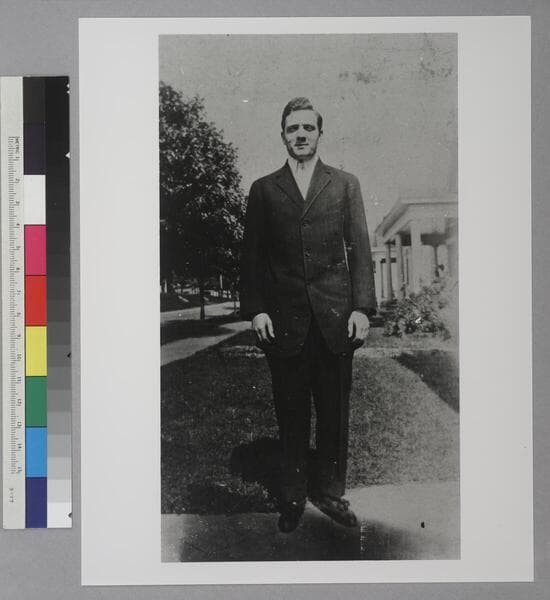 Edwin Powell Hubble as a young man, standing outside in Shelbyville, Kentucky