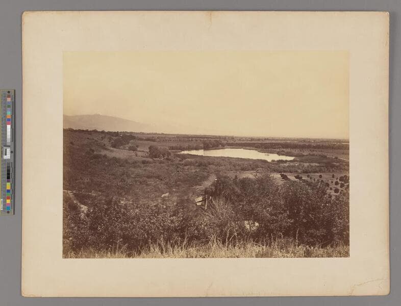 [Watkins number unknown.] This property later known as El Molino Viejo (The Old Mill), in what is now San Marino. Forms panorama with photCL Watkins 40. Written in pencil at bottom of mount: "The San Gabriel Valley."