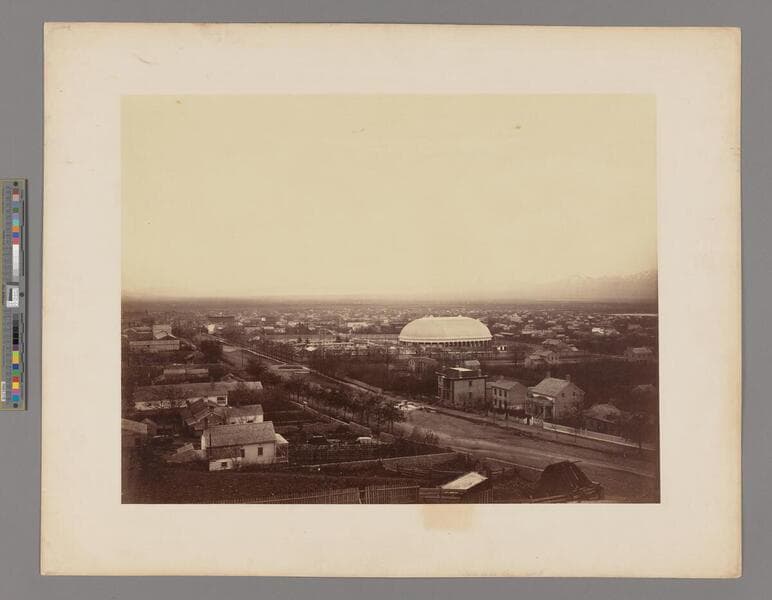 [Watkins number unknown] One of a three-part panorama (see also Naef nos. 882, 883- not in this collection). View of the city with the Salt Lake Tabernacle prominent in picture. Written in pencil at bottom of mount: "Salt Lake City No. 3."