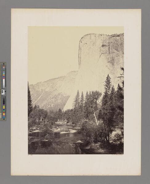 [Watkins no. 26] Signed in ink below print "No. 26" and "C. E. Watkins." Written in pencil at bottom of mount: "El Capitan 3600 ft. Yosemite No. 26"