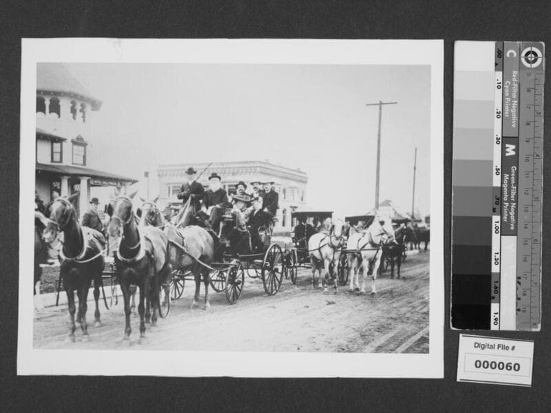 Eliza A. Otis with friends outside of Hotel Hollywood