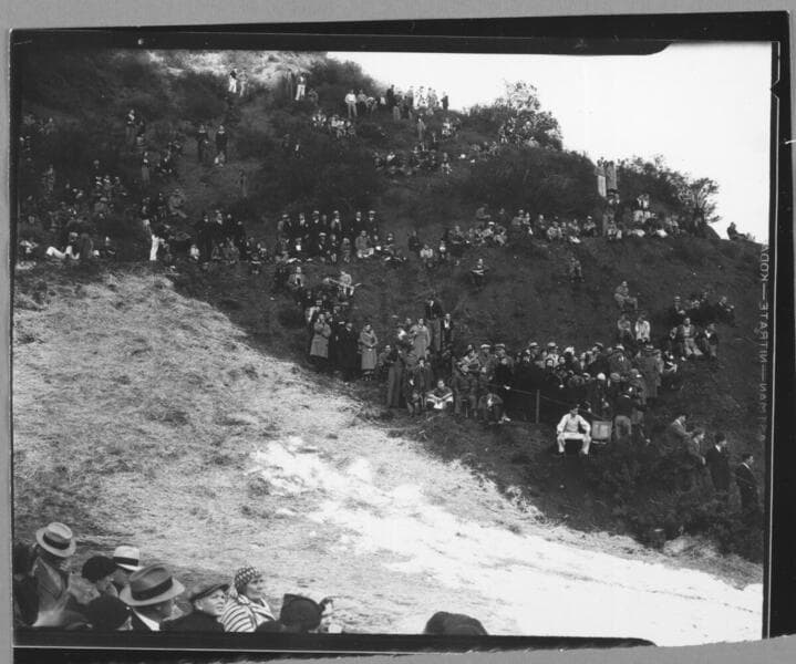 Ski jump at the Hollywood Bowl, 2301 North Highland, Los Angeles. 1935