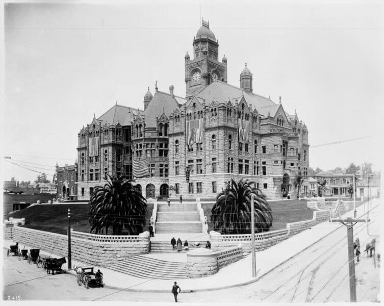 Los Angeles County Court House and Jail, Spring and Temple Streets, approximately 1904