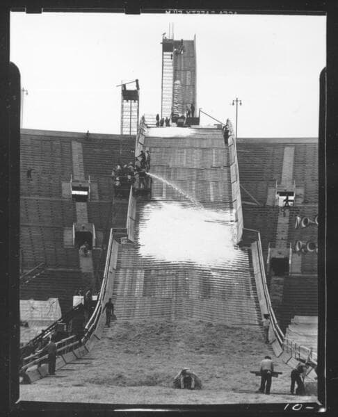 Ski jump, Los Angeles Memorial Coliseum, Los Angeles. 1938