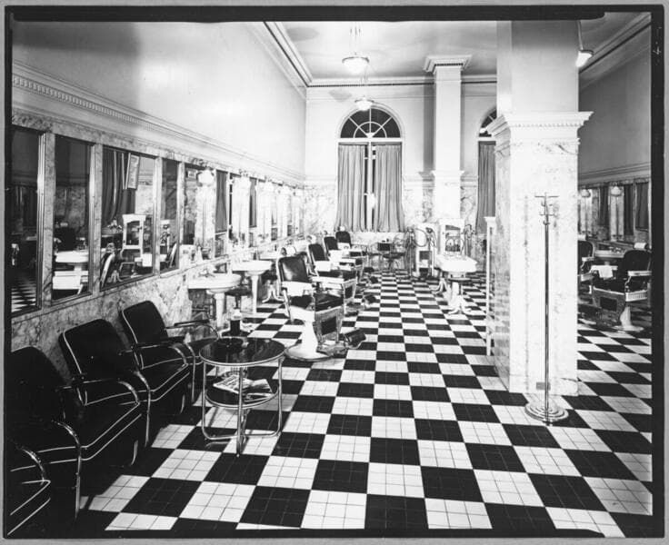 Barbershop, Jonathan Club, 545 South Figueroa, Los Angeles. 1937