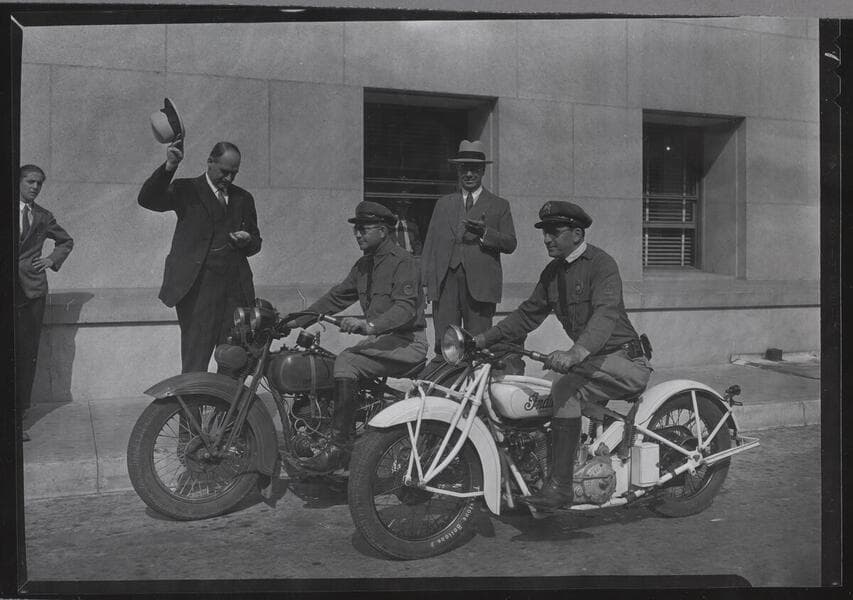 Motorcycle officer Andrew de Villa, former Venice police chief, Los Angeles County. 1926