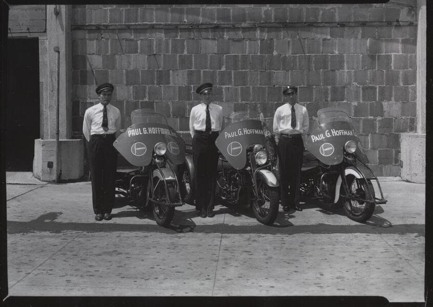 Motorcycle fleet, Paul G. Hoffman Company, Los Angeles. 1939