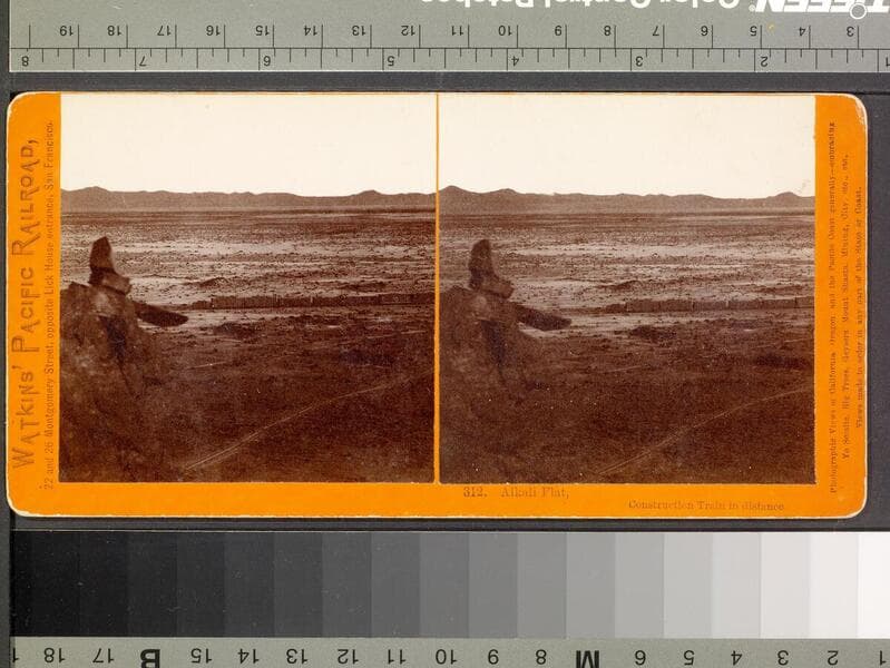 This collection contains 372 stereographic photographs (including some variants and duplicates) by photographer A. A. Hart that document the construction of the western half of first transcontinental railroad by the Central Pacific Railroad between 1864 and 1869. The collection includes all but seven of the original series, numbered from 1 to 364 by Hart (lacking 193, 323, 333, 358, 359, 362, and 364). The images chronicle the advancement of the railroad over 742 miles in California and the Sierra Nevada Mountains, Nevada, and Utah. The majority of the photographs are views of mountains, lakes, rivers, and forested areas (some with stumps from clear-cutting in the foreground), often with railroad tracks running through the center of the images. In addition, there are also images of locomotives, Chinese and other workers, equipment, bridges, tunnels, frontier and mining towns, construction camps, as well as some images of Native Americans, including Paiute and Shoshone Indians. The stereographs primarily contain Hart's own Sacramento imprint with series titles including: "Scenes in the Sierra Nevada Mountains"; "Scenes in the Valley of the Sacramento"; "Scenes in the Washoe Range"; "Scenes on the Humboldt River"; and "Scenes near Great Salt Lake". Interspersed in the collection are stereographs published without credit to Hart by Frank Durgan and Carleton E. Watkins.