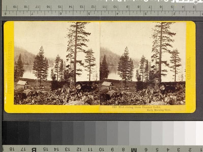 This collection contains 372 stereographic photographs (including some variants and duplicates) by photographer A. A. Hart that document the construction of the western half of first transcontinental railroad by the Central Pacific Railroad between 1864 and 1869. The collection includes all but seven of the original series, numbered from 1 to 364 by Hart (lacking 193, 323, 333, 358, 359, 362, and 364). The images chronicle the advancement of the railroad over 742 miles in California and the Sierra Nevada Mountains, Nevada, and Utah. The majority of the photographs are views of mountains, lakes, rivers, and forested areas (some with stumps from clear-cutting in the foreground), often with railroad tracks running through the center of the images. In addition, there are also images of locomotives, Chinese and other workers, equipment, bridges, tunnels, frontier and mining towns, construction camps, as well as some images of Native Americans, including Paiute and Shoshone Indians. The stereographs primarily contain Hart's own Sacramento imprint with series titles including: "Scenes in the Sierra Nevada Mountains"; "Scenes in the Valley of the Sacramento"; "Scenes in the Washoe Range"; "Scenes on the Humboldt River"; and "Scenes near Great Salt Lake". Interspersed in the collection are stereographs published without credit to Hart by Frank Durgan and Carleton E. Watkins.