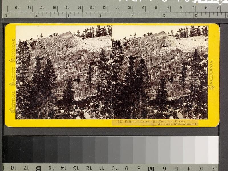 This collection contains 372 stereographic photographs (including some variants and duplicates) by photographer A. A. Hart that document the construction of the western half of first transcontinental railroad by the Central Pacific Railroad between 1864 and 1869. The collection includes all but seven of the original series, numbered from 1 to 364 by Hart (lacking 193, 323, 333, 358, 359, 362, and 364). The images chronicle the advancement of the railroad over 742 miles in California and the Sierra Nevada Mountains, Nevada, and Utah. The majority of the photographs are views of mountains, lakes, rivers, and forested areas (some with stumps from clear-cutting in the foreground), often with railroad tracks running through the center of the images. In addition, there are also images of locomotives, Chinese and other workers, equipment, bridges, tunnels, frontier and mining towns, construction camps, as well as some images of Native Americans, including Paiute and Shoshone Indians. The stereographs primarily contain Hart's own Sacramento imprint with series titles including: "Scenes in the Sierra Nevada Mountains"; "Scenes in the Valley of the Sacramento"; "Scenes in the Washoe Range"; "Scenes on the Humboldt River"; and "Scenes near Great Salt Lake". Interspersed in the collection are stereographs published without credit to Hart by Frank Durgan and Carleton E. Watkins.