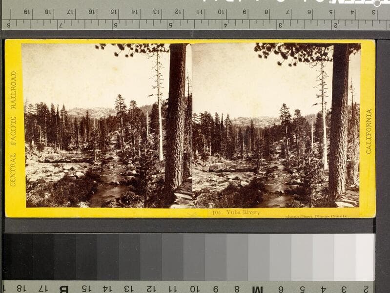 This collection contains 372 stereographic photographs (including some variants and duplicates) by photographer A. A. Hart that document the construction of the western half of first transcontinental railroad by the Central Pacific Railroad between 1864 and 1869. The collection includes all but seven of the original series, numbered from 1 to 364 by Hart (lacking 193, 323, 333, 358, 359, 362, and 364). The images chronicle the advancement of the railroad over 742 miles in California and the Sierra Nevada Mountains, Nevada, and Utah. The majority of the photographs are views of mountains, lakes, rivers, and forested areas (some with stumps from clear-cutting in the foreground), often with railroad tracks running through the center of the images. In addition, there are also images of locomotives, Chinese and other workers, equipment, bridges, tunnels, frontier and mining towns, construction camps, as well as some images of Native Americans, including Paiute and Shoshone Indians. The stereographs primarily contain Hart's own Sacramento imprint with series titles including: "Scenes in the Sierra Nevada Mountains"; "Scenes in the Valley of the Sacramento"; "Scenes in the Washoe Range"; "Scenes on the Humboldt River"; and "Scenes near Great Salt Lake". Interspersed in the collection are stereographs published without credit to Hart by Frank Durgan and Carleton E. Watkins.