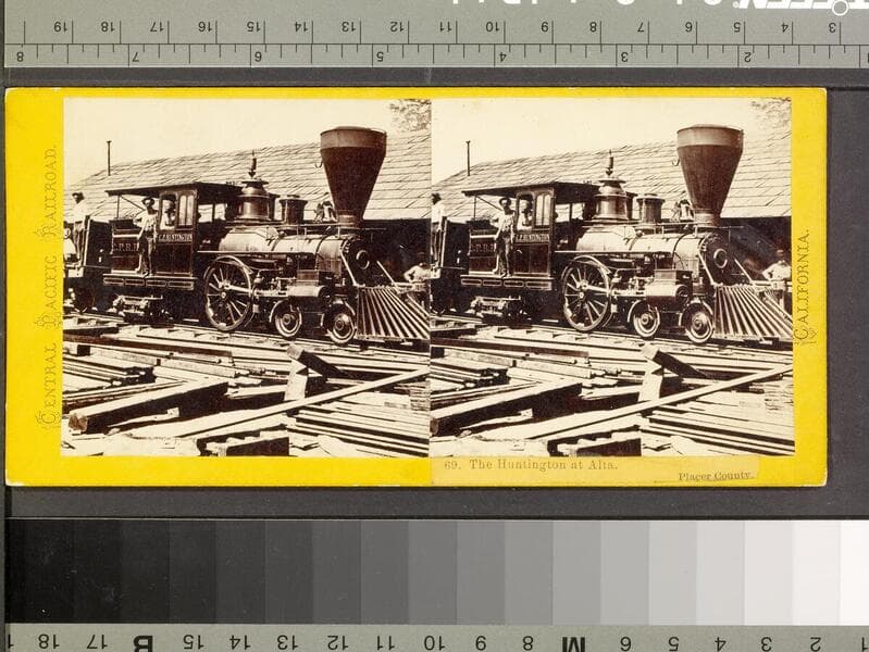 This collection contains 372 stereographic photographs (including some variants and duplicates) by photographer A. A. Hart that document the construction of the western half of first transcontinental railroad by the Central Pacific Railroad between 1864 and 1869. The collection includes all but seven of the original series, numbered from 1 to 364 by Hart (lacking 193, 323, 333, 358, 359, 362, and 364). The images chronicle the advancement of the railroad over 742 miles in California and the Sierra Nevada Mountains, Nevada, and Utah. The majority of the photographs are views of mountains, lakes, rivers, and forested areas (some with stumps from clear-cutting in the foreground), often with railroad tracks running through the center of the images. In addition, there are also images of locomotives, Chinese and other workers, equipment, bridges, tunnels, frontier and mining towns, construction camps, as well as some images of Native Americans, including Paiute and Shoshone Indians. The stereographs primarily contain Hart's own Sacramento imprint with series titles including: "Scenes in the Sierra Nevada Mountains"; "Scenes in the Valley of the Sacramento"; "Scenes in the Washoe Range"; "Scenes on the Humboldt River"; and "Scenes near Great Salt Lake". Interspersed in the collection are stereographs published without credit to Hart by Frank Durgan and Carleton E. Watkins.
