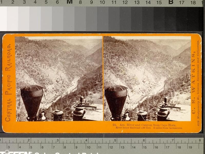 44. Am. River and Canyon from Cape Horn, River below Railroad 1,400 feet. 57 miles from Sacramento