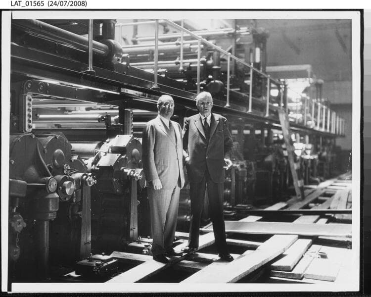 Harry Chandler with Eugene Meyer in the Times pressroom