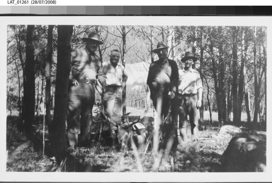 Hunters pose with dead elk