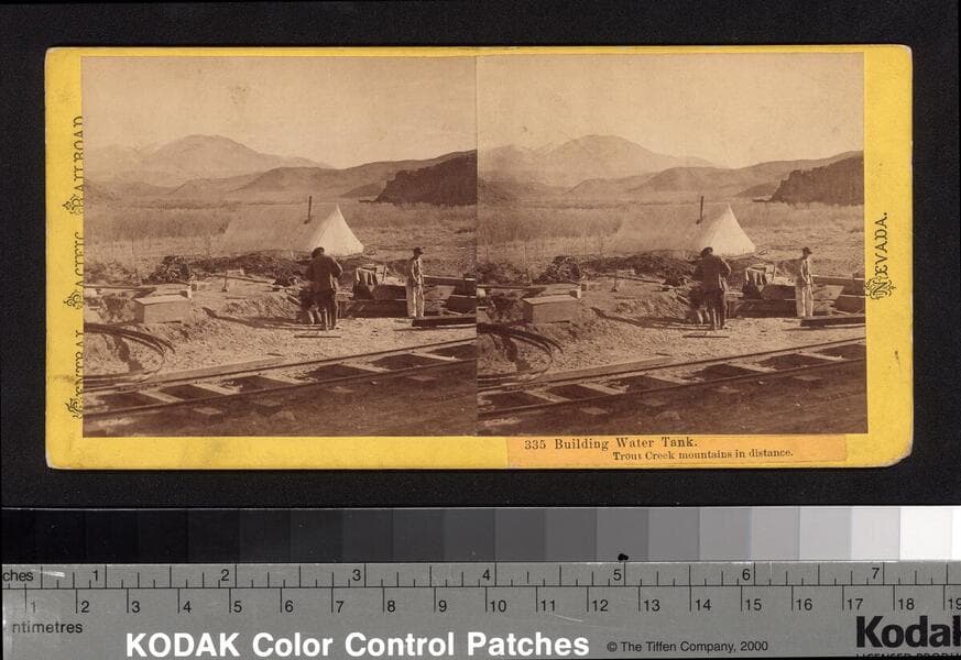 This collection contains 372 stereographic photographs (including some variants and duplicates) by photographer A. A. Hart that document the construction of the western half of first transcontinental railroad by the Central Pacific Railroad between 1864 and 1869. The collection includes all but seven of the original series, numbered from 1 to 364 by Hart (lacking 193, 323, 333, 358, 359, 362, and 364). The images chronicle the advancement of the railroad over 742 miles in California and the Sierra Nevada Mountains, Nevada, and Utah. The majority of the photographs are views of mountains, lakes, rivers, and forested areas (some with stumps from clear-cutting in the foreground), often with railroad tracks running through the center of the images. In addition, there are also images of locomotives, Chinese and other workers, equipment, bridges, tunnels, frontier and mining towns, construction camps, as well as some images of Native Americans, including Paiute and Shoshone Indians. The stereographs primarily contain Hart's own Sacramento imprint with series titles including: "Scenes in the Sierra Nevada Mountains"; "Scenes in the Valley of the Sacramento"; "Scenes in the Washoe Range"; "Scenes on the Humboldt River"; and "Scenes near Great Salt Lake". Interspersed in the collection are stereographs published without credit to Hart by Frank Durgan and Carleton E. Watkins.